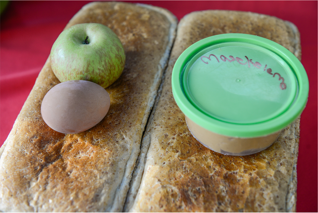 - Daily highly nutritious take-home ration includes 2 loaves of locally baked fortified brown bread, peanut butter, boiled egg, fruit.