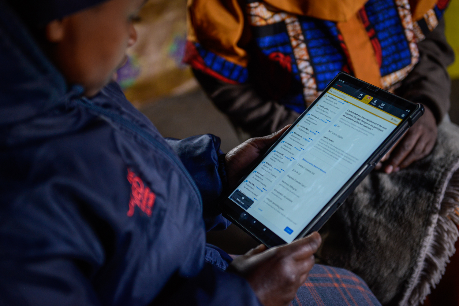 “The eHealth application helps us a lot,” says Nkune, as she opens her tablet and shows us how the application guides her through the initial process of entering patient details, testing for NCDs, and determining whether a patient requires additional check-ups or medication. “The app also helps because it reduces the need for paperwork: the patients are able to sign consent forms and everything on the app itself,” she explains. “Like this, I’m able to go from patient to patient in the village. I usually wake up very early to try and test patients’ blood sugar levels before they have their first meal of the day, as that gives us a more accurate reading.”