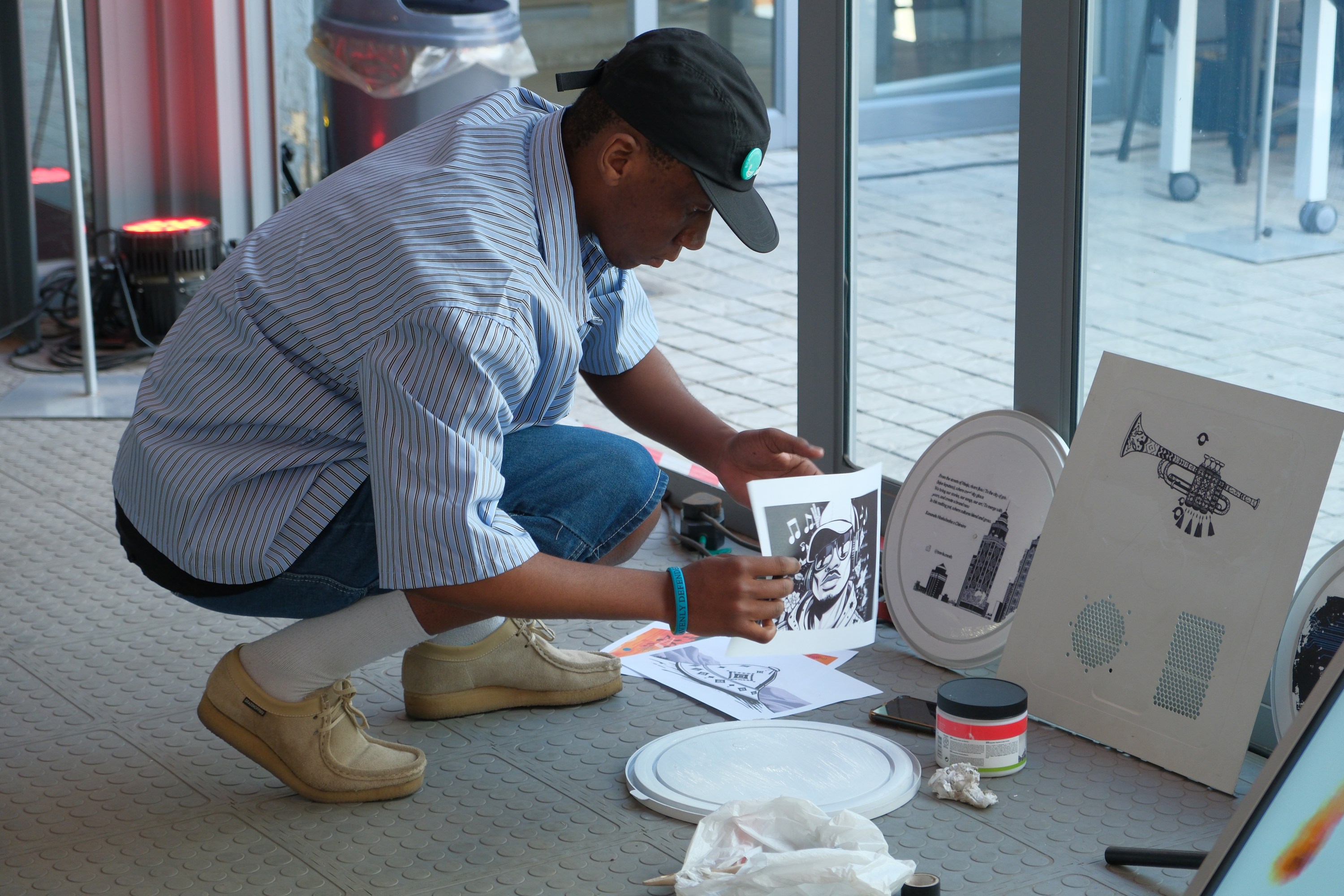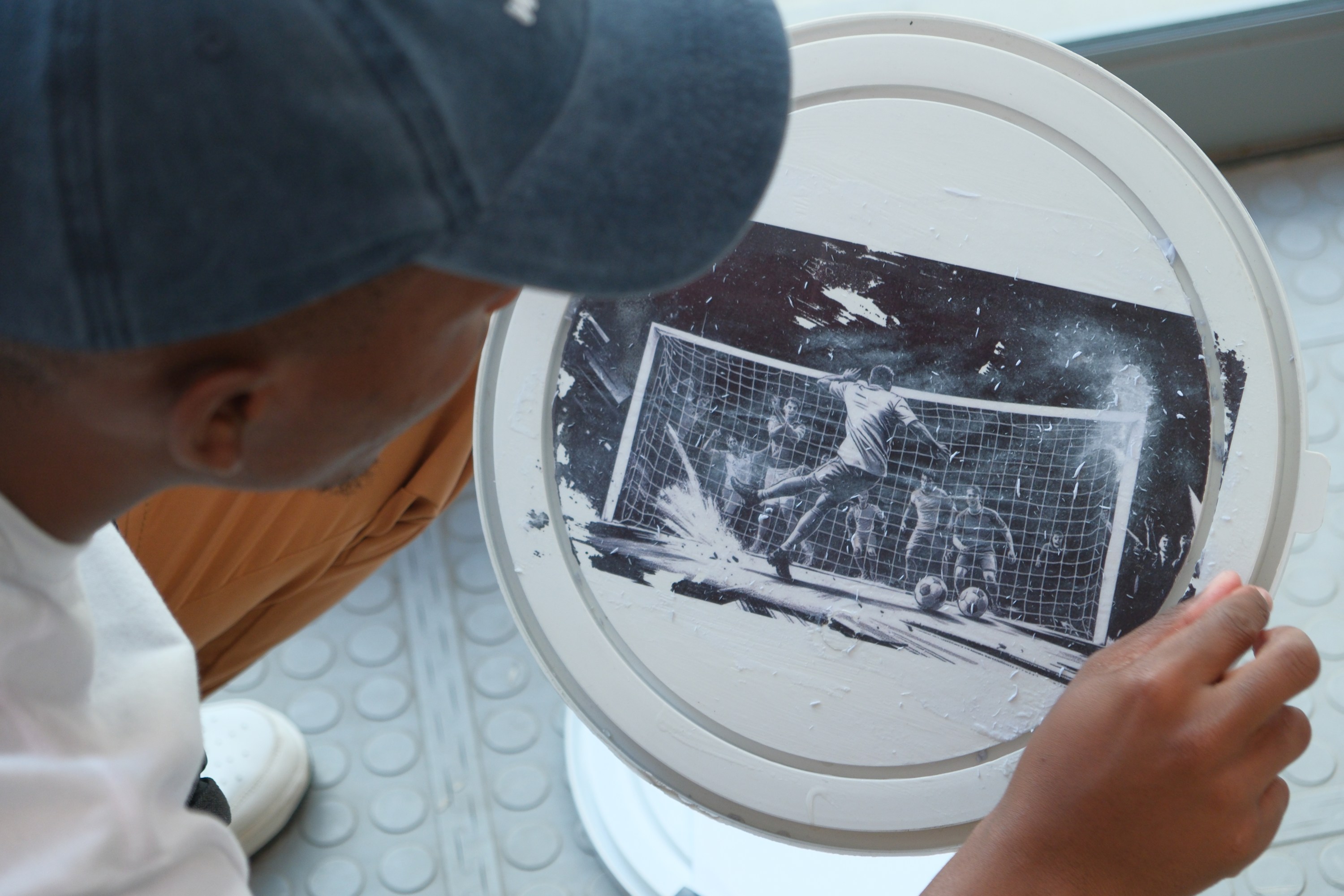 During the next few days, The Hub team worked on separate projects in collaboration with Chimère. Ntsie Mabuse and Thabang Ntlale (who did most of the documentation for The Hub Chimère team) worked on a comic book that represented them as a collective (in their younger years) and partnered with Chimère to generate the images that complemented their story. Pontšo Sekhesa worked on a photo story (collage). Kananelo Moshabesha and Teboho Mokapi created artwork using Photo Gel Transfer, which they transferred onto various surfaces like a CPU side panel and plastic lids.