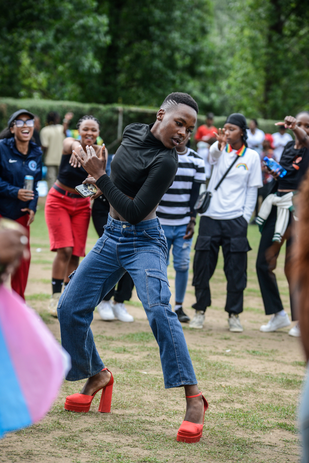 “We don’t really report,” she says. “Our community members have normalised this kind of violence because it’s something that has been going on for so long. This is why events like today are God-sent for us, because these are spaces of solidarity, where you can see that there are other LGBTQIA+ people in Lesotho. This plays a huge role in our mental health and our everyday lives. As you can see, people here today are free to be who they are, to embrace their identities.”
