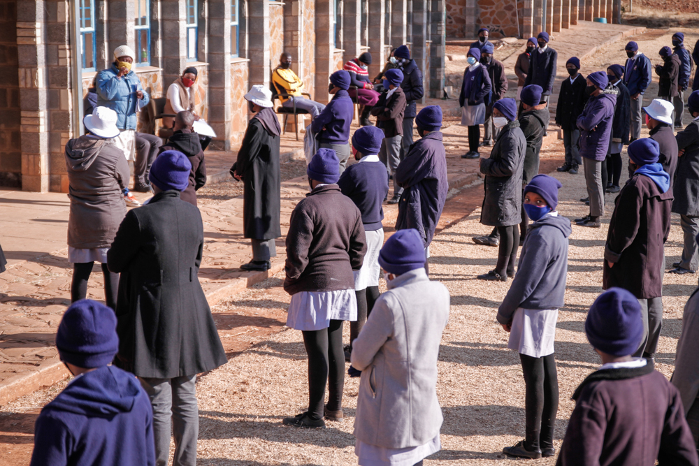 ‘Mabafokeng Maino, a teacher at St. Louis Primary School in Matsieng, says that the staff and parents at her school have taken it upon themselves to ensure that Covid-19 safety measures are in place, with little support from the government.